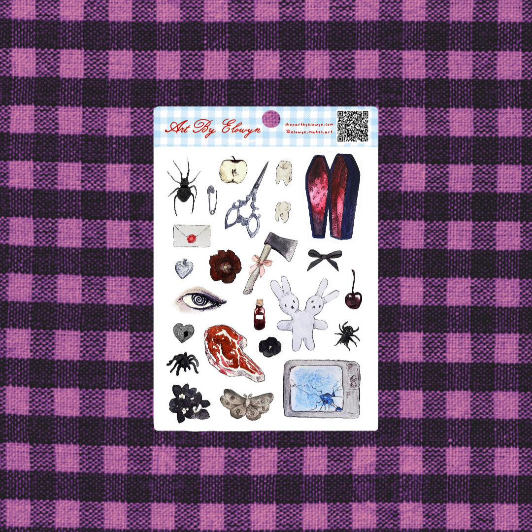 • What You Get: Two (2) super spooky & dreamy 5" x 7" sticker sheets: the Scary Sticker Sheet AND the Misty Woods Sticker Sheet!